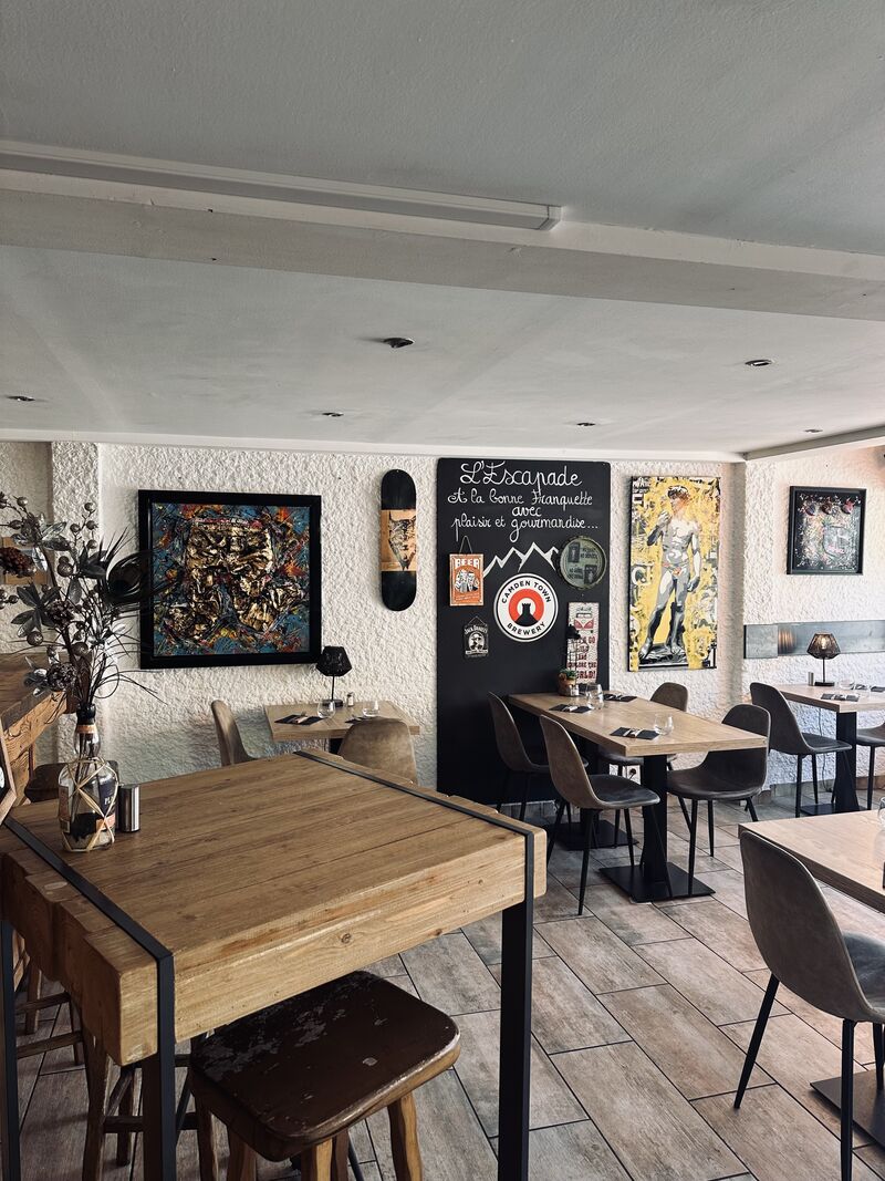 Petit restaurant 25 places assises, carte d'ici ou d’ailleurs, des burgers, plats à l'ardoise, salade, pad thai...